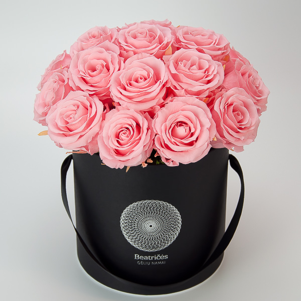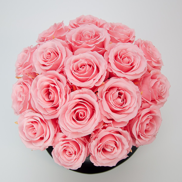 Preserved roses in a black box