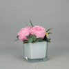 Kompozicija su miegančiomis bijūninėmis rožėmis. Aukštis apie 13 – 14 cm.