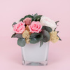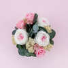 Kompozicija su stabilizuotomis bijūninėmis rožėmis. Aukštis apie 17 cm.