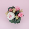 Kompozicija su stabilizuotomis bijūninėmis rožėmis. Aukštis apie 13 cm.