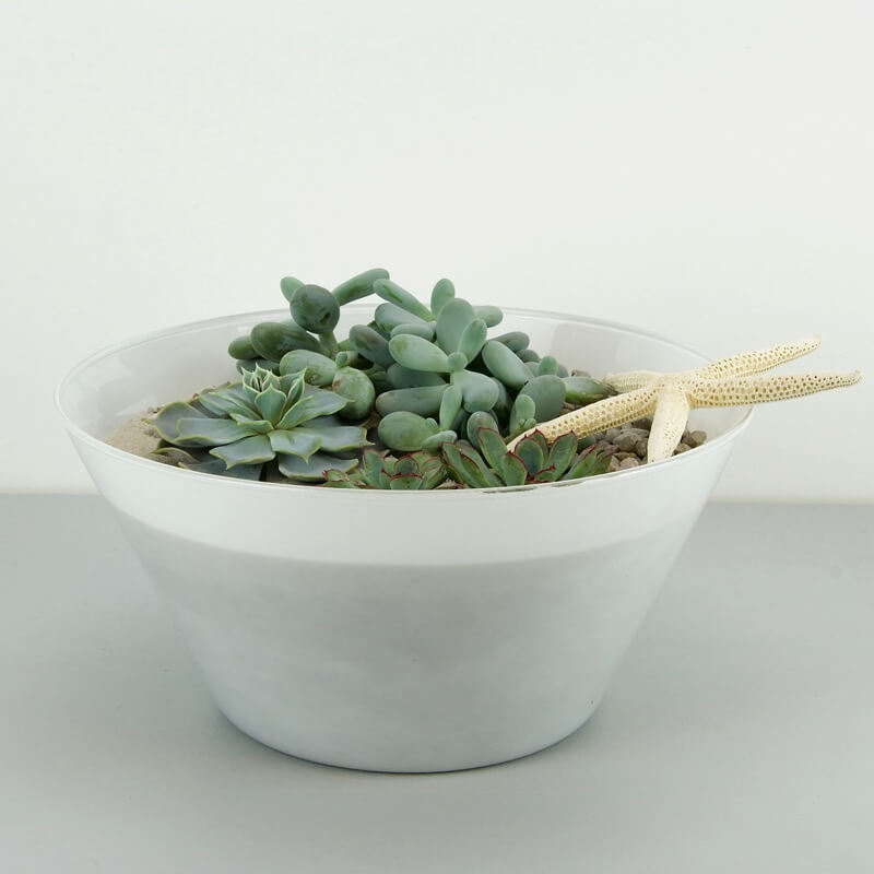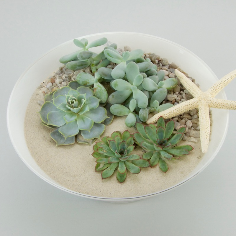 Sukulentų kompozicija – originali alternatyva pakeičianti skintas gėles, ar net dovaną. Kompozicija nereikalaus daug priežiūros, tik truputi vandens ir saulėtos palangės. Diametras – 27 cm.