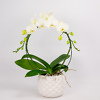 Белая орхидея в керамическом горшке. Высота композиции около 40 см.