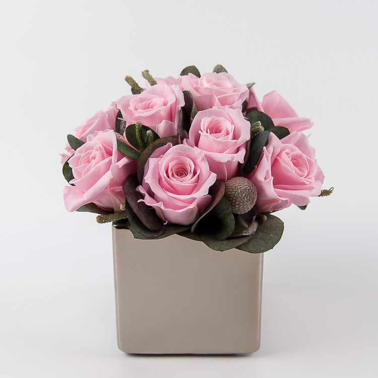Композиция из стабилизированных роз Pink. Высота и ширина композиции около 12 см.